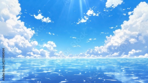 Sunny ocean sky, cloudscape, tranquil scene, background, illustration