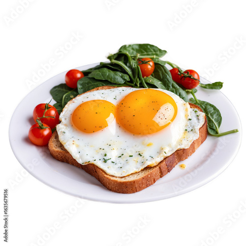 Sunny Side Up Eggs on Toast with Spinach and Cherry Tomatoes, Healthy Breakfast.