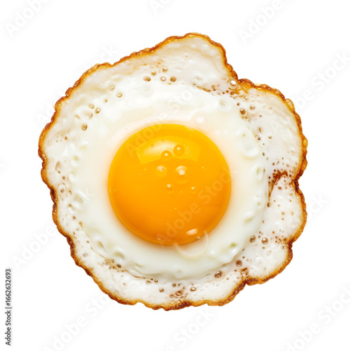 Sunny side up fried egg with bright yellow yolk and crispy white edges isolated on a transparent background