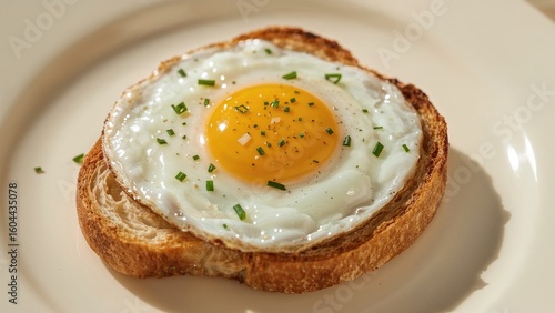 Sunny-Side Up Egg Served on Toast for Morning Meal