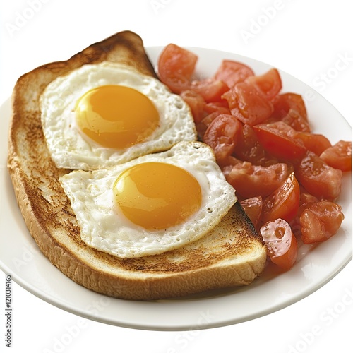 Sunny-side up eggs, toast, tomatoes breakfast