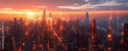 Sunrise Metropolis: A Futuristic Cityscape at Dawn