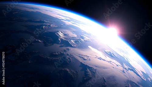 Sunrise Over Earth: View of Earth's horizon with the sun rising from space, casting a warm glow on the atmosphere