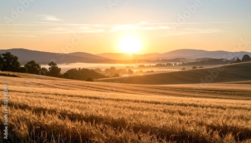 Sunrise over golden fields
