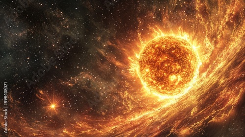 Sun's Embrace: Illustrate stars embraced by the sun's gravitational pull, their orbits reflecting the sun's powerful influence.
