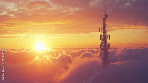 Sunset Above the Clouds: A Telecommunication Tower at Golden Hour