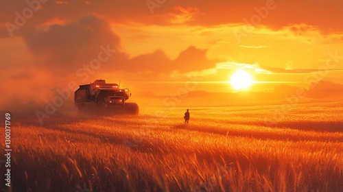 Sunset adventure off-road vehicle journey through golden wheat fields