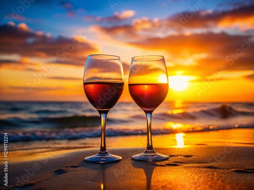 Sunset Beach Toast: Silhouetted Wine Glasses Clinking at Golden Hour