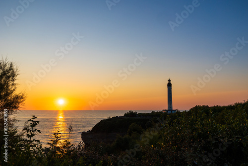 Sunset Behind the Lighthouse at Pointe Saint-Martin in Biarritz
