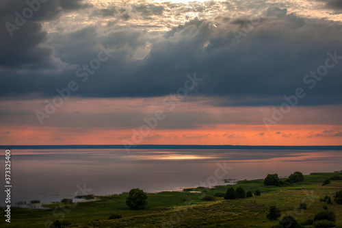 Sunset in Pereslavl-Zalessky. Pleshcheyevo lake. The beauty of the ancient Russian cities of Russia.