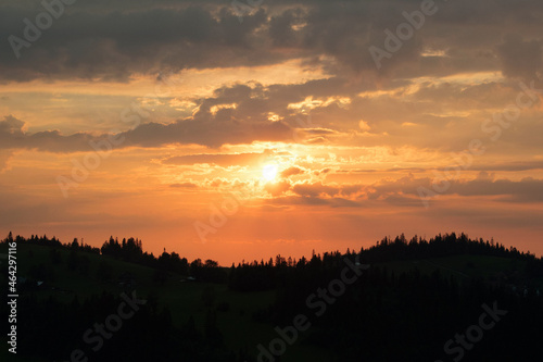 sunset in the mountains over the hills tatra poland slovakia forest clouds landscape wallpaper