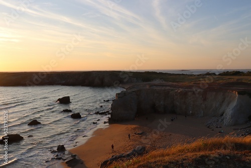 sunset on the beach at the wild coast of Quiberon