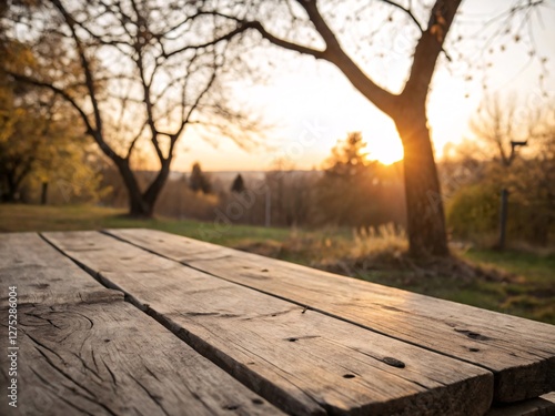 sunset on the wooden table can be used for mocking up or display product to make advertising.