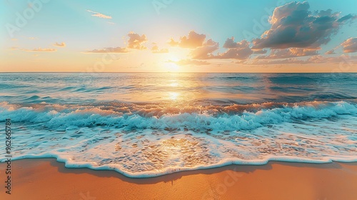 Sunset Over a Tranquil Ocean Beach with Gentle Waves