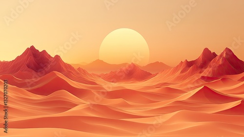 Sunset over red desert dunes and mountains. Background clear sky. Use landscape wallpaper