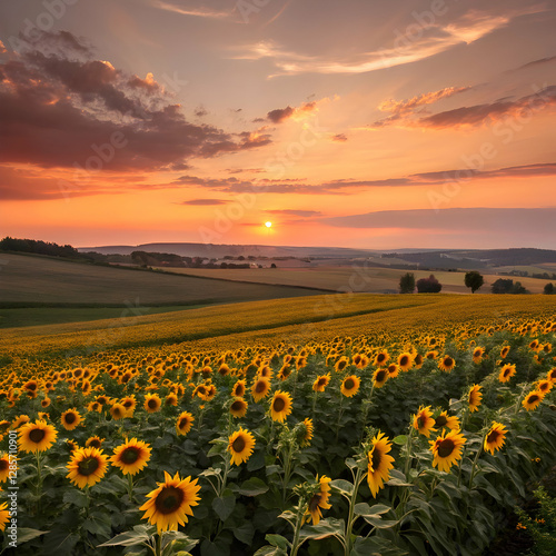 Sunset over Sunflower Field