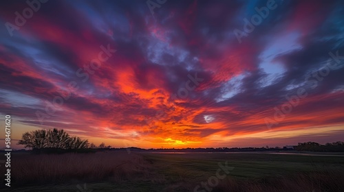 sunset over the field, generative AI