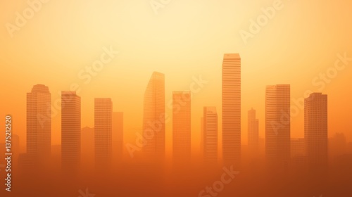 Sunset over urban skyline cityscape digital art warm environment high angle view tranquil concept for seo impact