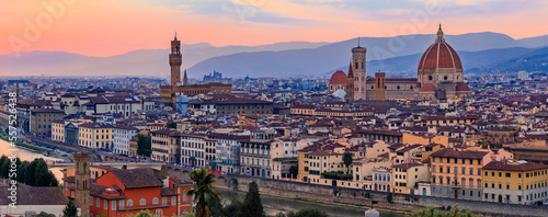 Sunset panorama with Duomo cathedral and Palazzo Vecchio Tower, Florence Italy