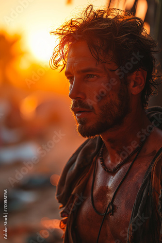 Sunset Stalwart: Portrait of Young, Attractive, Muscular Man in Dusk