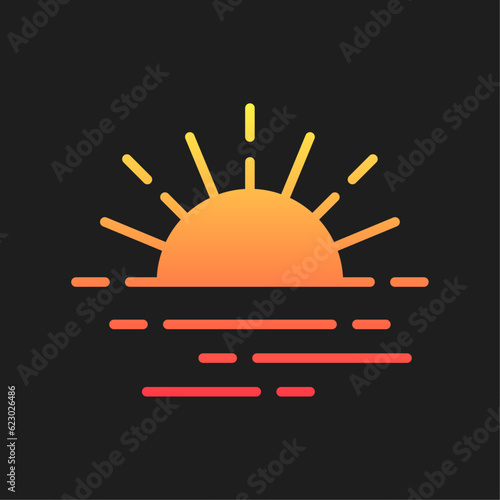 Sunset vector logo. Bright gradient icon on black background.