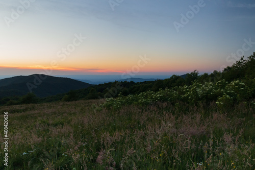 Sunset view from Max Patch bald over the Great Smoky Mountains