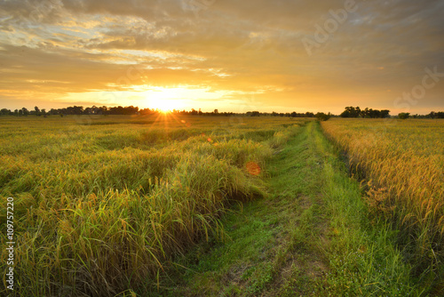 Sunset view over paddy field