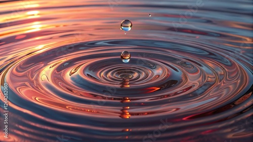 Sunset Water Drop Ripples Concentric Circles, Digital Art, Tranquility, Water, Reflection Water, Ripple