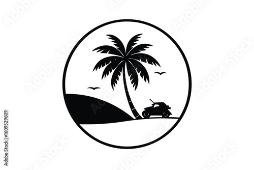 Sunset with Palm Tree and Snowmobile on Dune Illustration Design