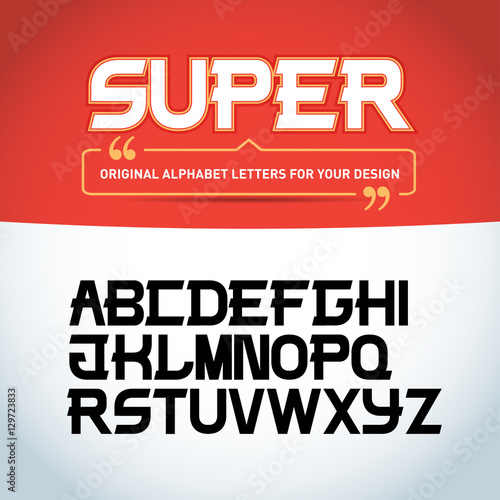'Super letters' isolated on black background. Modern font. Latin alphabet letters. Alphabet. Modern geometric font for advertising, title or logo design. Vector Illustration.