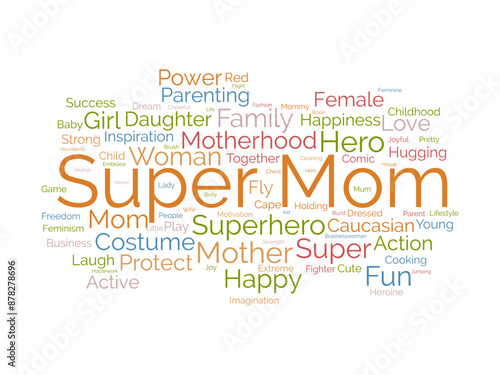 Super Mom wordcloud template. Mom Love concept vector background.