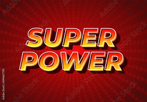 Super power. Text effect in 3D style, gradient yellow red color. Dark red background