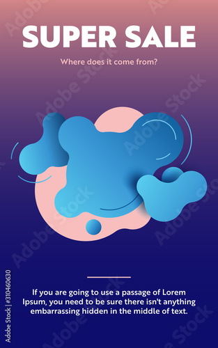 Super sale advertising background design. Dynamical forms, flowing liquid shapes, wavy line. Gradient color. Template for logo, flyer or presentation. Vector illustration. Sale concept