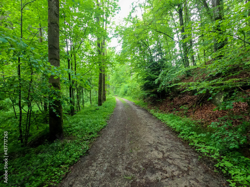Super wide angle shots with action cam of forest and meadow in spring in daylight