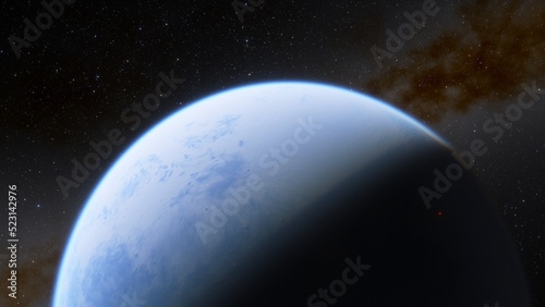 super-earth planet, realistic exoplanet, planet suitable for colonization, earth-like planet in far space, planets background 3d render