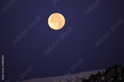 Supermoon full moon over the Jura mountains between Switzerland and France