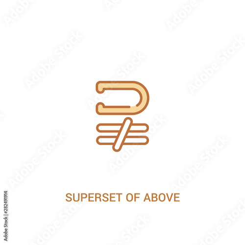 superset of above not equal to concept 2 colored icon. simple line element illustration. outline brown superset of above not equal to symbol. can be used for web and mobile ui/ux.