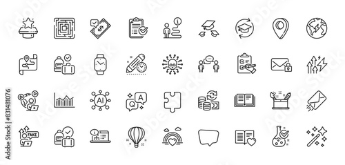 Support, Online documentation and Love book line icons pack. AI, Question and Answer, Map pin icons. Consulting business, Winner podium, Fake internet web icon. Vector