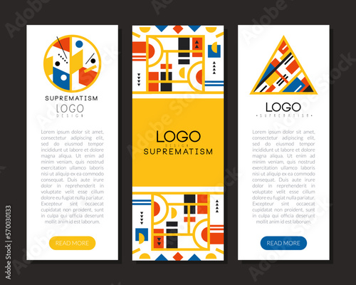 Suprematism logo design landing page. Bauhaus style web banner, mobile app design vector illustration