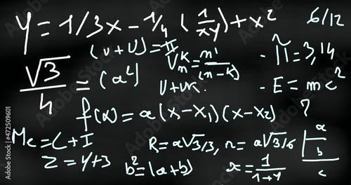 Sur tableau blanc mal nettoyé formule mathématique écrite en blanc