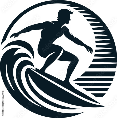 Surfer Riding a Wave Logo Icon Silhouette in Vector Style on White Background