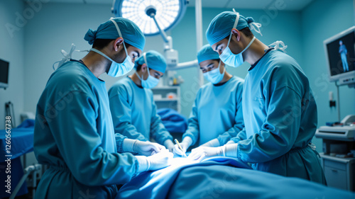 Surgeons Performing a Complex Operation in a Modern Hospital