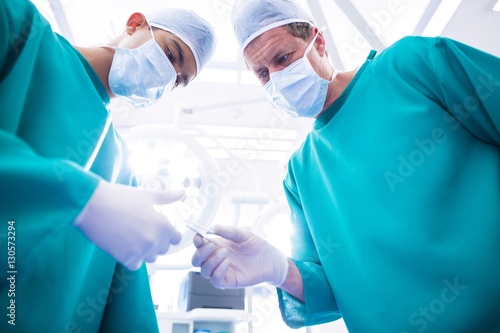 Surgeons performing operation in operation room
