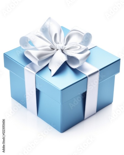 Surprise Unwrapped: Blue Open Gift Box with Satin White Bow and Ribbon Isolated on White Background