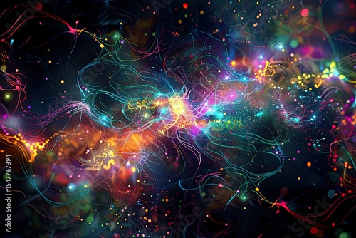 Surreal bio-digital brain with luminous neural interface and glowing lines