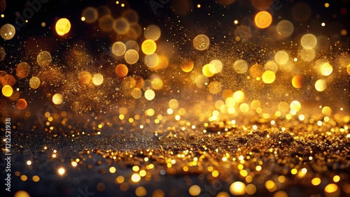 Surreal black canvas, ablaze with glittering gold bokeh.