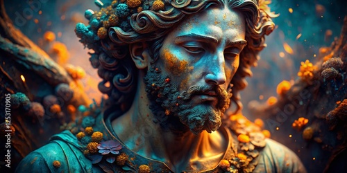 Surreal Close-up: Weathered Stone Statue Torso, Dreamlike Texture