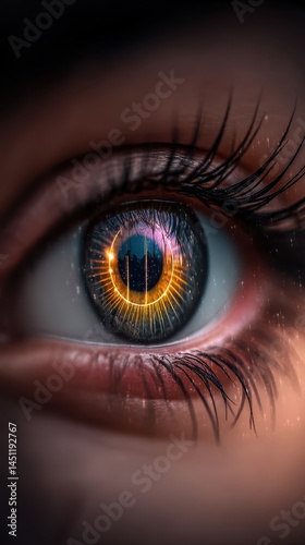 Surreal Cosmic Vision with Double Exposure Creating an Enigmatic Eye Reflecting Space and Celestial Wonders