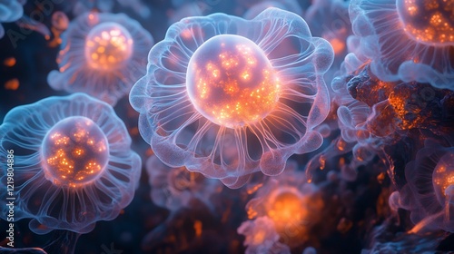 Surreal depiction of glowing viruses