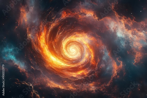 surreal digital artwork depicting a cosmic gateway spiraling into a vivid nebula with floating geometric shapes and streams of light converging towards the center